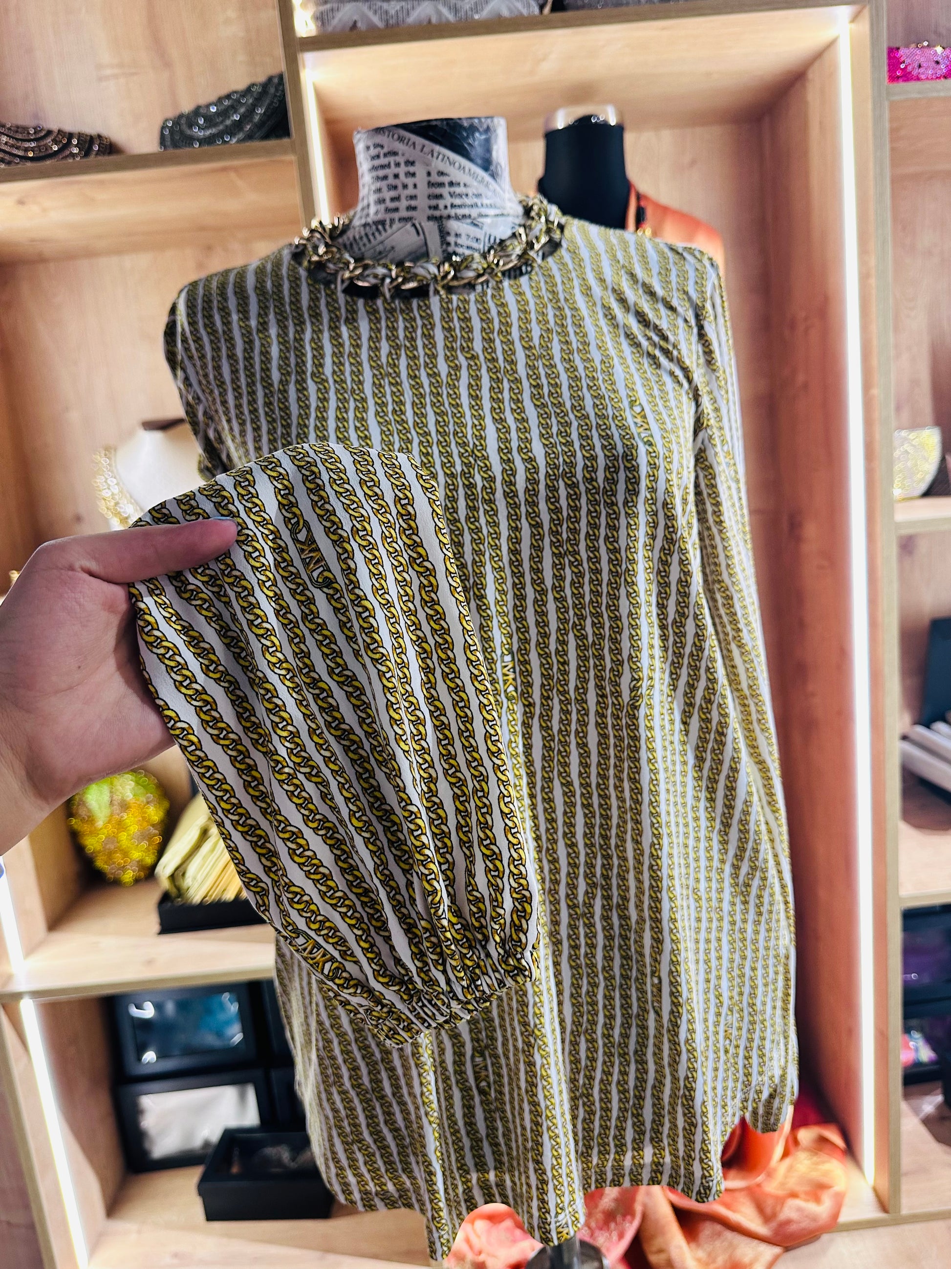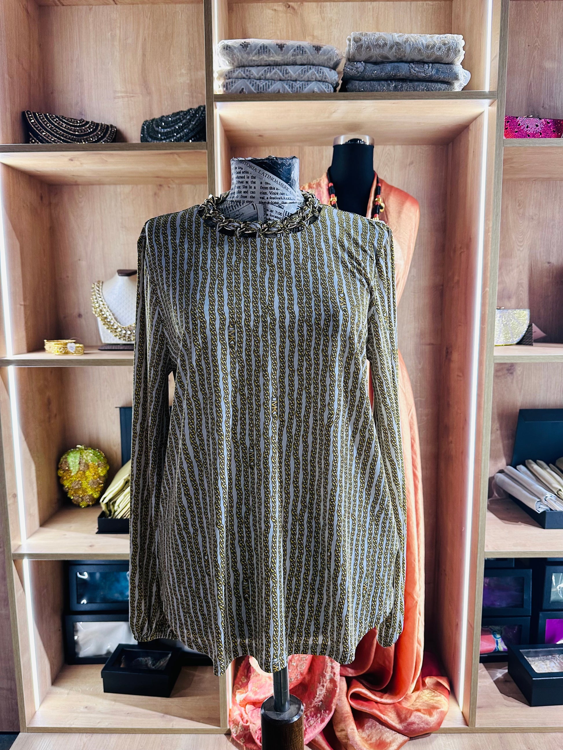 Michael Kors women's chain-print neck blouse size medium